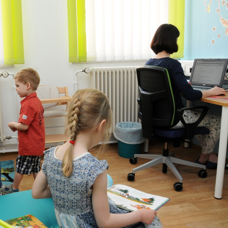There are many reasons for using the parent-child room. Sometimes, the child is not yet healthy enough to go to Kindergarten after an infection, but there is still an important meeting on campus. Then the meeting can take place in this room. The child can sleep or play, and you are still reachable on campus. Sometimes, the Kindergarten is closed due to a strike. In this case, this room is a good temporary solution allowing you to keep an eye on the children while still being reachable and having access to the Intranet. Or maybe you are pregnant and just need a room where you can rest for fifteen minutes. The parent-child room is equipped for all of these occasions.